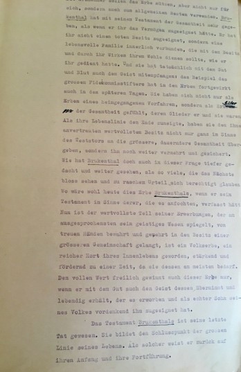 - Zwischen Typoskript und gedruckter Edition der Brukenthal-Biographie bestehen erhebliche Unterschiede. Der Herausgeber (Karl Kurt Klein) hat, stellenweise nicht sehr glücklich, eingegriffen. Man vergleiche den schönen letzten Absatz des Werkes im Typoskript mit dem nahezu lächerlichen letzten Satz in der Edition: